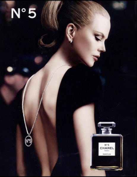 How does one connote luxury in the advertising realm? The benefit of such an industry is its ephemerality, where trend depends on the constancy of renewal, which has primarily relied on “advertising and marketing strategies” (Von Wachenfeldt 353). In Brygida Hurek’s paper “The Communication of Luxury: A Semiotic Analysis of a Luxury Brand's Perfume Commercial,” she writes that “objects can be categorized according to their utility, their economic worth or they can be used to carry symbolic value, such as birthday presents” (Hurek 11). A perfume bottle is, in a practical sense, liquid fragrance in a container. Therefore, a luxury brand needs to attach meaning and connotations to the product, in order to lift it to a status of symbolic value that matches its steep price. As Hurek argues, “the acquisition of a brand new luxury vehicle [is] not for its speed or technologies, but for its ability to mark social position, status, membership or splendor” (Hurek 11). In addition to semiotics, luxury branding, especially in relation to the ephemerality posed by the perfume industry, relies on remembrance. Paula Von Wachenfeldt writes that “a sensual meeting between two people is a recognizable feeling from reality or from cinema and by associating CHANEL No 5 with it, the consumer can experience a certain familiarity. The perfume is the engine of this encounter revolving around beauty, sensations, and not least the unexpected” (Von Wachenfeldt 357). To state the obvious, when one advertises perfume, one doesn’t really promote the item itself. How did this luxurious aromatic essence orchestrate a moment? Allow one to shed an identity to slip on the mask of another? And how does it tie to the identity of the brand it’s from?